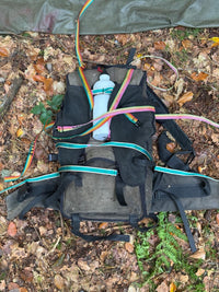 Die bunten Spannriemen werden in Schweden für uns gefertigt und haben die gute Metallschnalle. Wer schonmal auf Fahrt war, weiß wovon wir reden. Die Dinger halten richtig was aus. Und auf dem Waldboden gehen sie Dank der knalligen Farben auch nicht verloren.